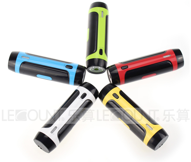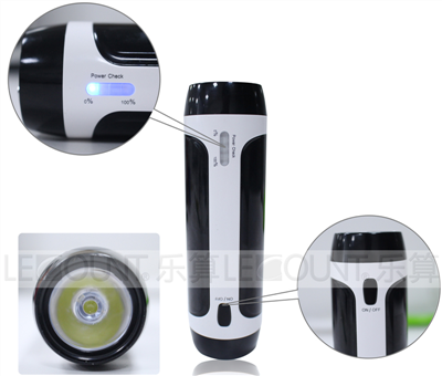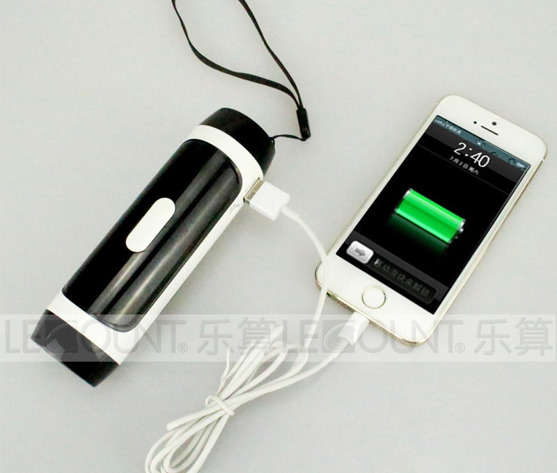 Function: 3W flash light,. Portable Powerbank to charge various digital devices like digital cameras, mobile phone and tablets via USB output port. LED indicator lights to show batteries are charging and to check batteries capacity.
